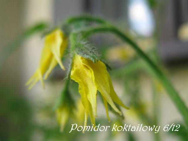 Duża radość dzisiaj nastała zastała na tarasie. Pojawiły się pierwsze pomidorki, są to trzy małe zielone koraliki. Cieszę się, że moje wysiłki ogrodnicze nie poszły na marne i pomimo tego, że roślinki nie są dokarmiane nawozami, tak szybko owocują.