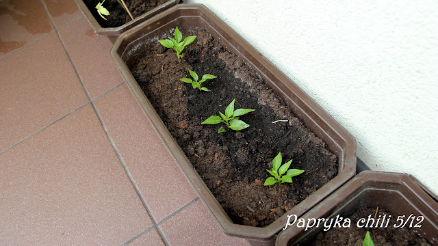Początkiem roku, dostałam ususzony owoc czerwonej papryki. Wydobyłam z niego małe nasionka, namoczyłam i wysiałam. Długo czekałam na pierwsze oznaki kiełkowania. Było warto, gdyż w marcu miałam już ładne roślinki gotowe do rozsadzenia.